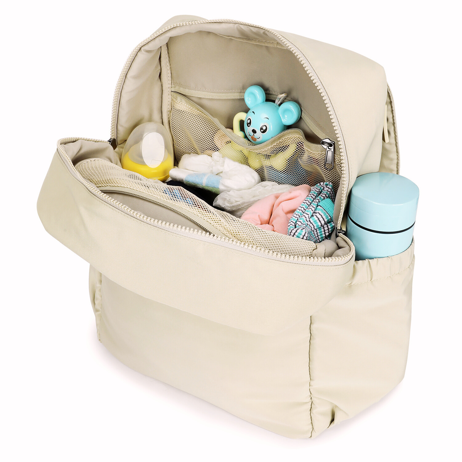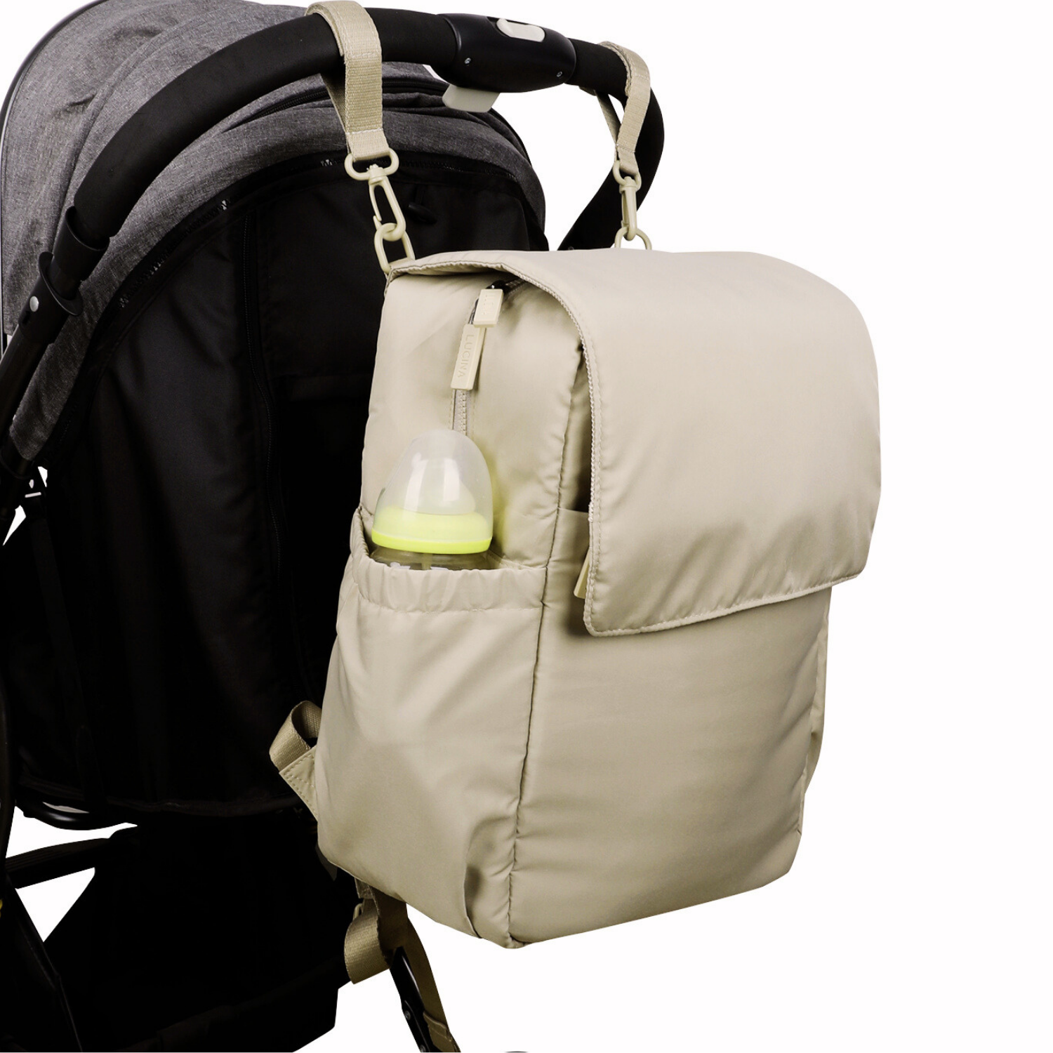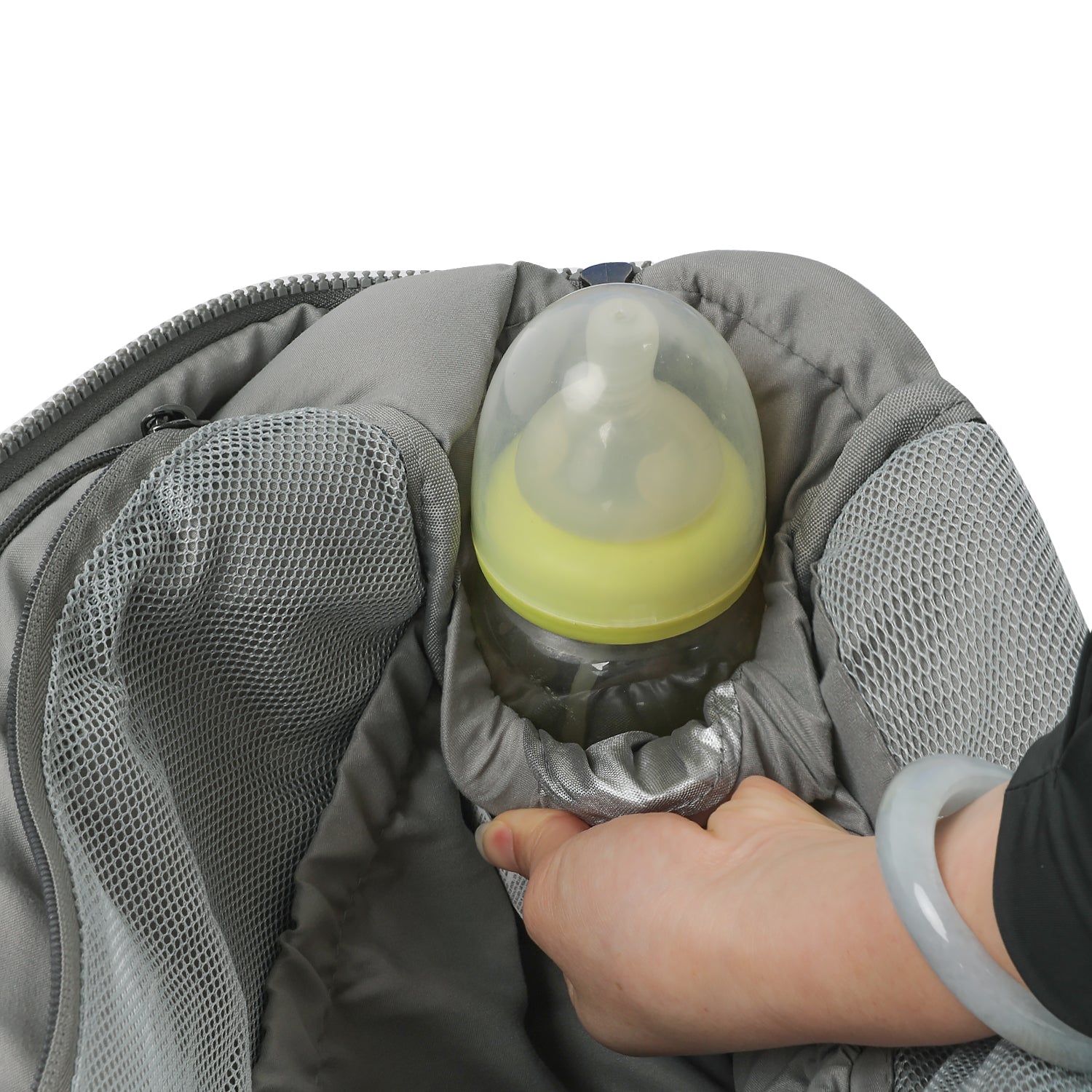 Mila, geniş iç hacmi ve hem iç hem dış yüzeyinde yer alan çok sayıda bölmesiyle, bebeğinizin ve sizin tüm ihtiyaçlarınızı düzenli bir şekilde taşımanızı sağlar. Tüm parçaları, çantanın kumaş rengiyle estetik bir uyum içinde tasarlanarak zarif ve bütünlüklü bir görünüm sunar. İçerisinde yer alan beş adet termal göz ve bölme, mama ve içecekleri ideal sıcaklıkta muhafaza etmenize yardımcı olur. Mila, hem bebek arabasına kolayca sabitlenebilir hem de seyahatlerde valiz koluna entegre edilerek maksimum konfor sunar. Ayrıca 14 inçe kadar olan tablet ve bilgisayarlarınız için ped korumalı özel bir bölmesi vardır.